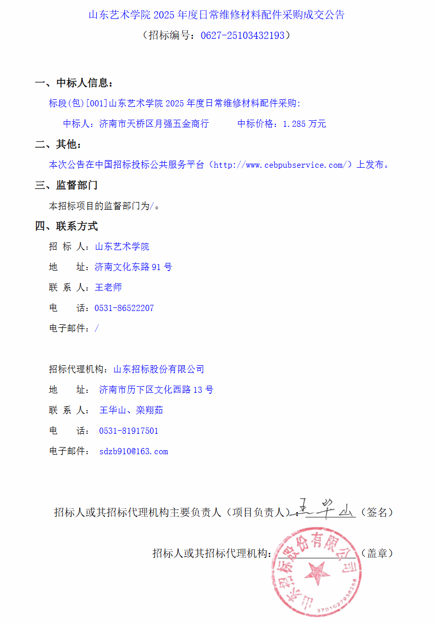 相关链接:https://ctbpsp.com/#/bulletinDetail?uuid=e4e8efaf-1654-4974-a76a-d7778cba5747&inpvalue=%E5%B1%B1%E4%B8%9C%E8%89%BA%E6%9C%AF%E5%AD%A6%E9%99%A2%202025%20%E5%B9%B4%E5%BA%A6%E6%97%A5%E5%B8%B8%E7%BB%B4%E4%BF%AE%E6%9D%90%E6%96%99%E9%85%8D%E4%BB%B6%E9%87%87%E8%B4%AD&dataSource=0&tenderAgency=